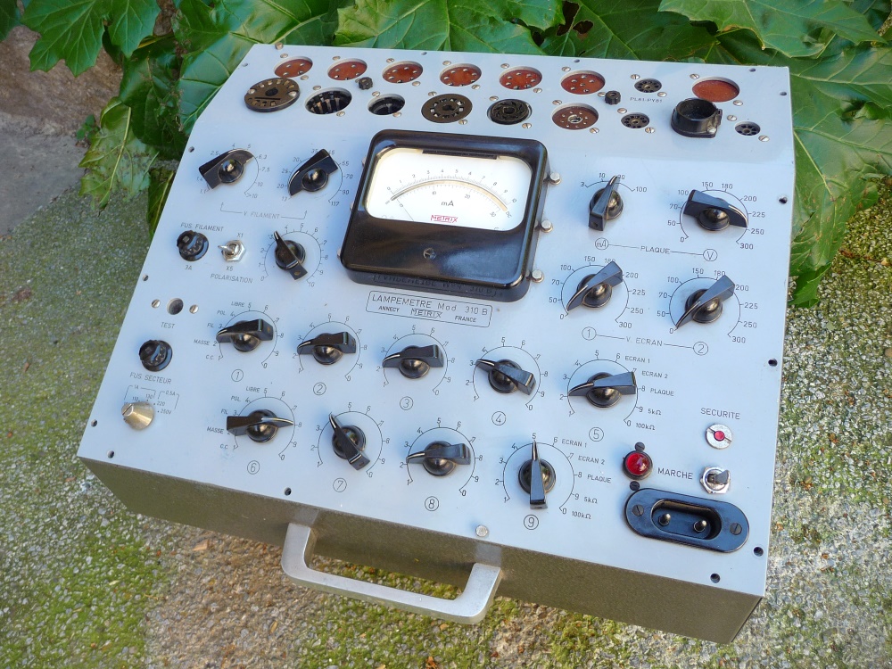 L' amateur (éclairé !) de matériel à tubes électroniques connait l'intérêt de disposer d'un testeur de tubes lui permettant d'évaluer en quelques instants l'état électrique d'une triode, d'une penthode, que celle-ci soit issue de son amplificateur ou récupérée au détour d'une brocante. Au moindre doute, il lui suffit d'enficher le tube thermoïonique sur l'embase correspondante, de programmer la matrice de commutation des électrodes aux différentes sources de potentiel, et de mettre en chauffe le filament. Quelques secondes plus tard, en fonction d'un potentiel de polarisation de la grille de commande donné s'affiche l'intensité anodique correspondante. La comparaison de ces deux valeurs avec celles, théoriques, en neuf, du constructeur indique l'écart. La capacité d'émission cathodique et la pente seront les principaux paramètres déterminants du niveau d'usage et d'usure de l'exemplaire.