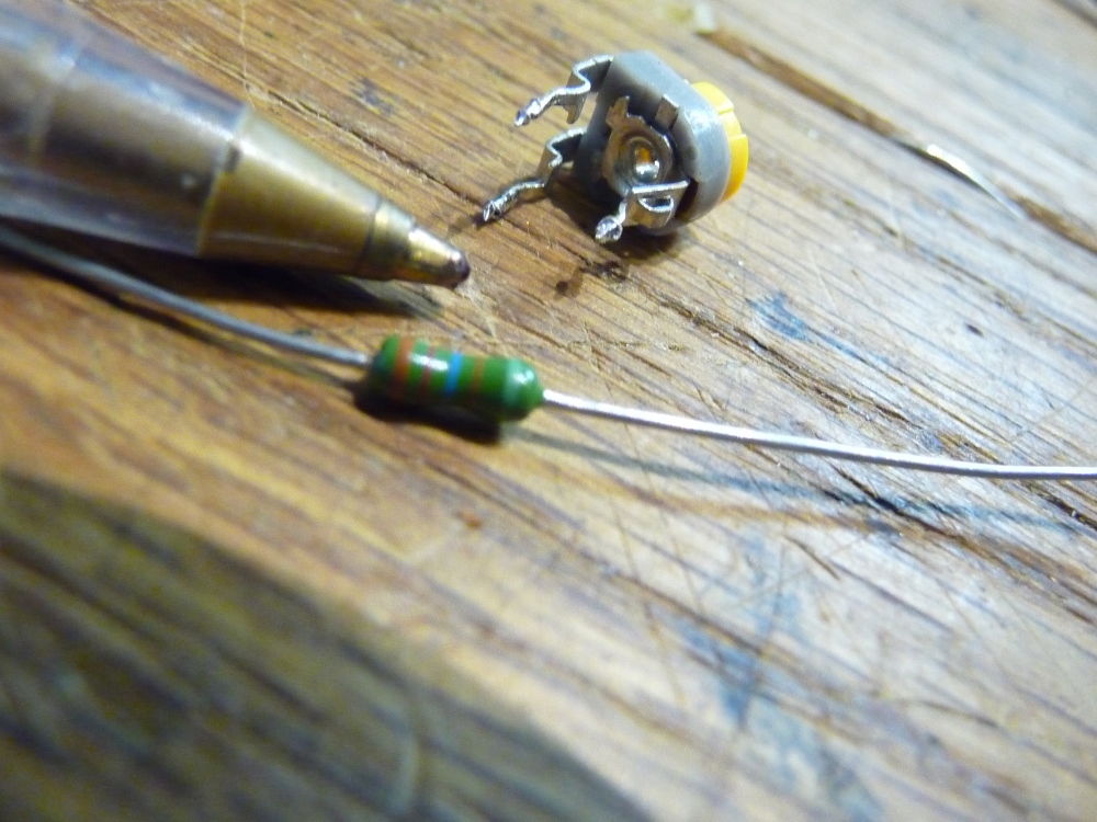 Quelques remplacements de condensateurs ne parviennent pas à stabiliser la situation et c'est un test anodin qui épaissit le mystère : le simple fait d’effleurer le coffret entraîne des défauts, de même que toucher les nappes des câbles du bloc optique. En démontant celui-ci, il apparaît que le réglage d'offset de la lentille laser est ... fendu. Le contact doit être aléatoire, et rend l'asservissement de focus assez hasardeux. A la mesure, le remplacement par une résistance de précision rétablit une lecture normale..
