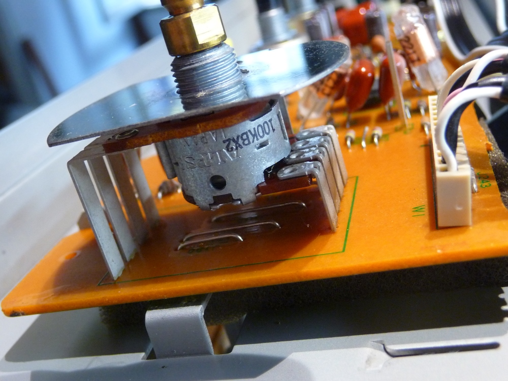 Longtemps remisé pour des bruits dans la commande de volume, l'appareil a finalement quitté la cave pour une promenade chez Audio-Station. En apparence, le problème est classique, démontage de la face avant, nettoyage au décapant du potentiomètre et il devrait repartir ...