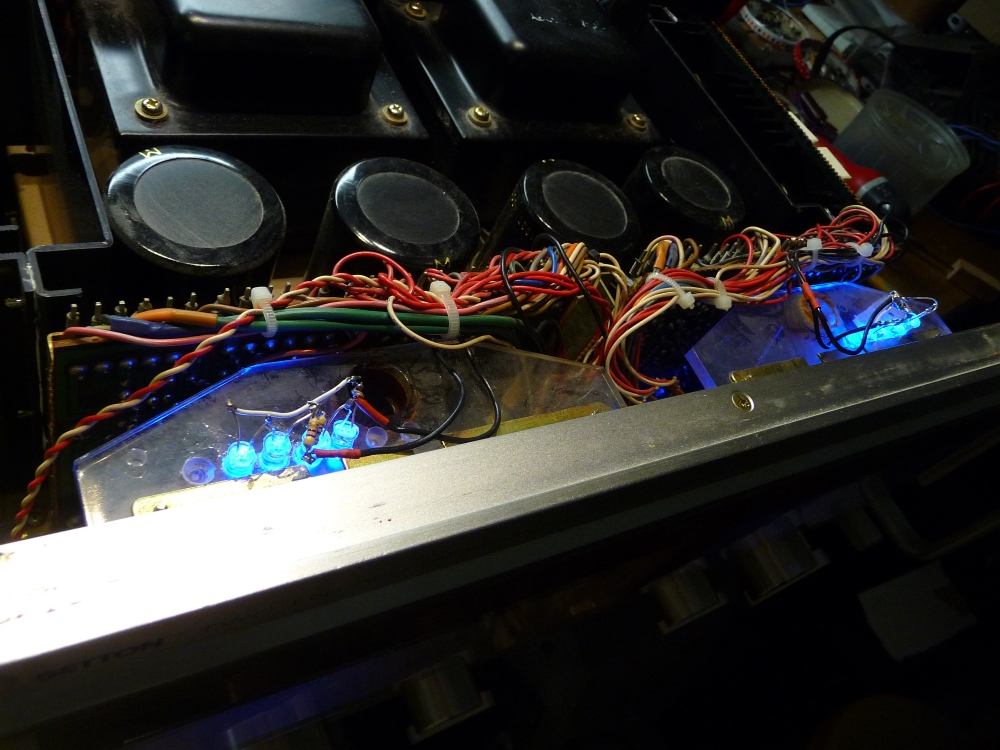 L'éclairage des vu-mètres est hors service, remplacement en LEDs bleues et mise sous tension: "click" , et ça repart !