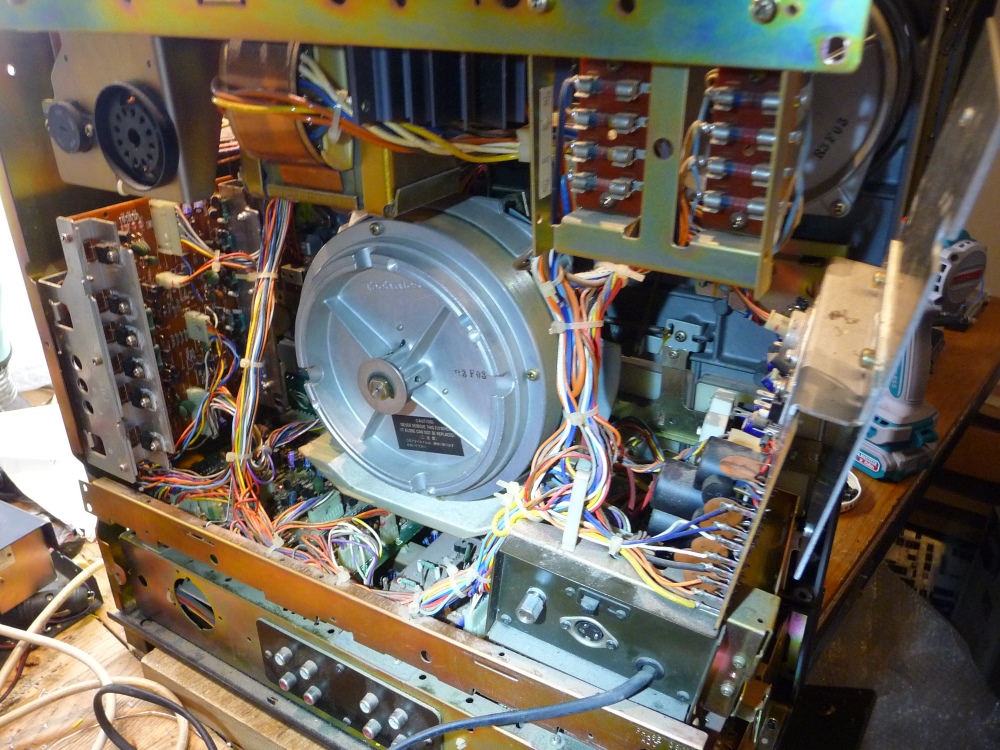 C'est donc un lot complet de ces condensateurs dont la fabrication a été ratée. Le client assurera lui-même le remplacement des derniers situés sur les cartes audio, enregistrement et lecture. Remontage, tarage du pitch au centre de la course et c'est reparti.