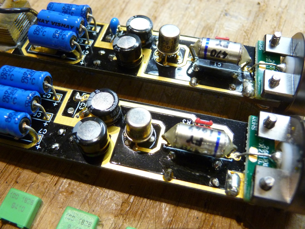 D'autres interventions permettent, toujours par substitution, d'améliorer qualitativement la fidélité de la restitution par la réduction de certaines formes de distorsion, et ce, quel que soit le genre musical à l'écoute: chaque composant présente une signature sonore qui lui est propre et qui concourt au résultat final. Qu'il s'agisse de l'alimentation, de la /des régulation(s), de la boucle de CR, des condensateurs de liaisons, de l'architecture des retours de masse, de la structure des câbles d'enceintes, à chaque étage d'amplification le plancher de bruit résiduel est indissociable du niveau de résolution que l'on espère de chacun des maillons constitutifs d'une chaîne"HI-FI". La conséquence de cette cascade de modifications est immédiatement audible, elle produit à la fois une spatialisation accrue (séparation D-G), une véracité des timbres confondante (pureté spectrale), une dynamique étonnante (rapport S/B) , une ampleur spectaculaire (densité spectrale), une fluidité inouïe, bref, un naturel surprenant ... Ce qui était du "son" devient enfin de la Musique !