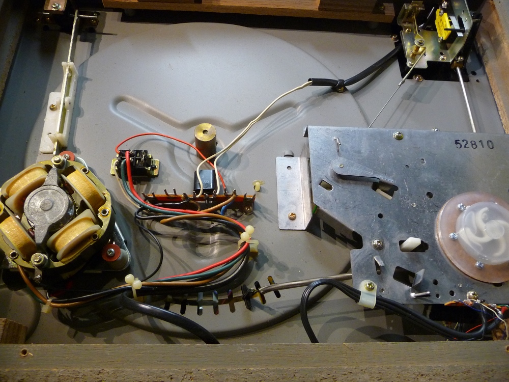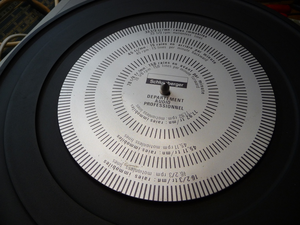Le contrôle stroboscopique de la vitesse de rotation montre une petite lenteur qui s'explique à la fois par la courroie d'entraînement légèrement détendue et à la fois par le pivot dont la lubrification remonte à plusieurs décennies.