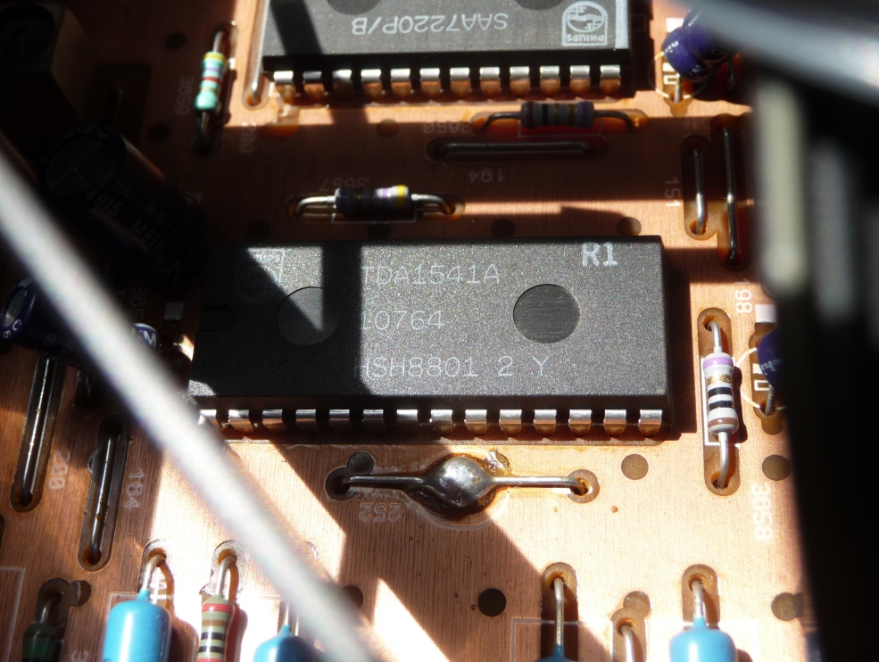 Peu accessible, la carte-mère fait usage d'un mix de composants traversants et à montage de surface au verso (CMS). Elle comporte cependant un DAC très réputé: le fameux TDA1541 ! Aussi proposons-nous de réaliser un lot d'améliorations ... le résultat est "étonnant" selon son propriétaire (V. livre d'or) !