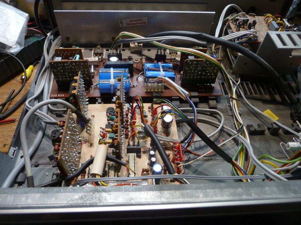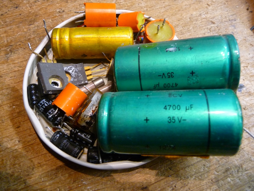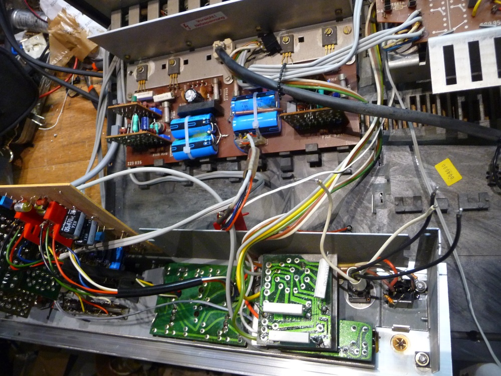 Une vraie cure de jouvence va être appliquée à l'alimentation avant toute remise sous tension . Et les remplacements viennent à bout des défauts , deux transistors de puissance à l'encapsulation MOTOROLA obsolète seront remplacés par des TO3-P Toshiba similaires.  Quelques résistances sous dimensionnées complèteront la rénovation pour un silence supérieur à la version originelle.