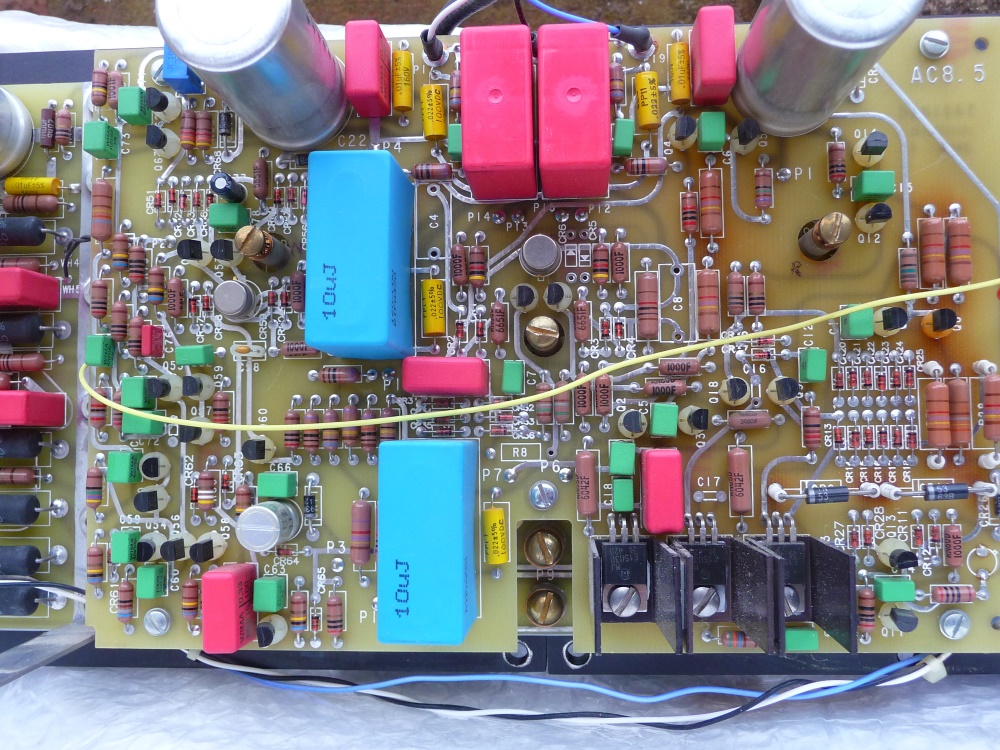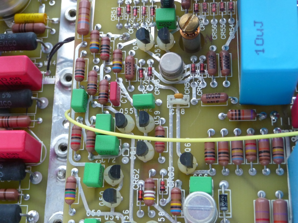 L'extraction des composants est particulièrement difficile, les cartes sont en double face, avec des canons de traversées métallisés qu'il ne faut pas endommager , mais nettoyer méticuleusement à la pompe de manière à ce que les remplaçants puissent être insérés sans le moindre forçage , l'appareil fonctionne en + et -65V , gare à l'isolation !