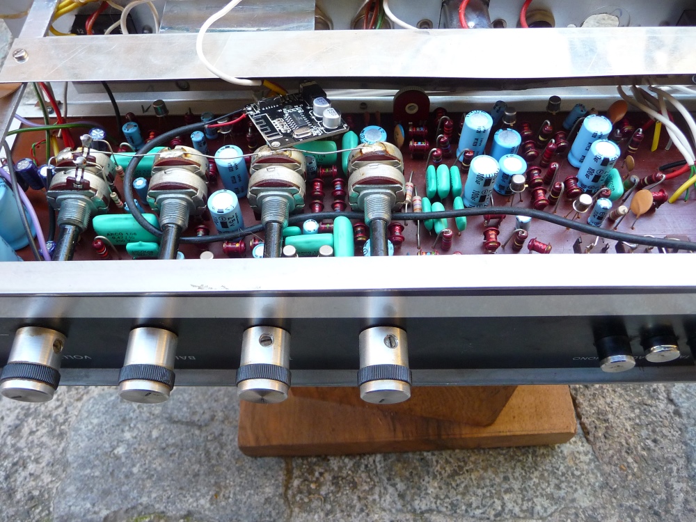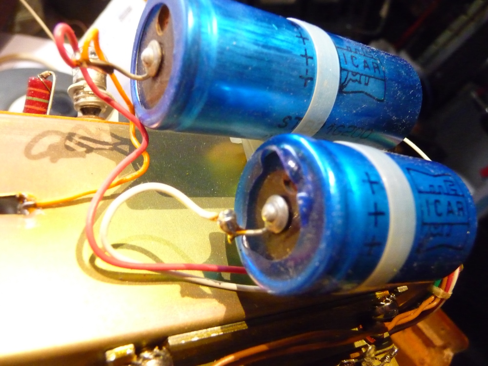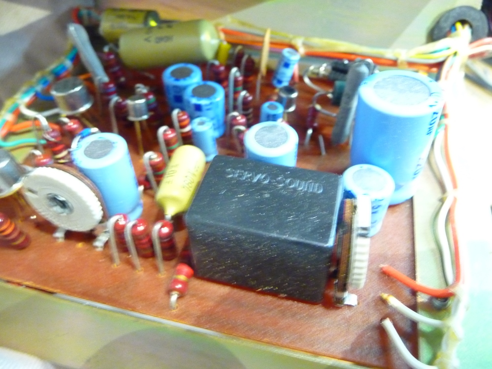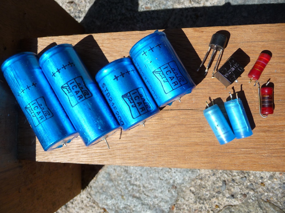 L'accès à chaque amplificateur-alimentation se fait par la dépose de la grille avant , suivie de celle du haut-parleur, et l'on peut extraire le module actif. Un redresseur fendu en deux à remplacer, tout comme les condensateurs chimiques très fatigués, viendront rétablir le fonctionnement normal.