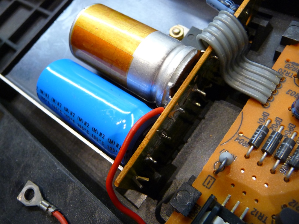 Celle-ci est arrivée, incapable de tourner . L'alimentation est juste hors-service, un condensateur FRAKO est en court-circuit total. Il a d'ailleurs fait fumer la minuscule résistance qui fait office de fusible...
